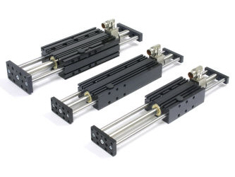| Ball Bearings Use of linear guides with ball bearings is recommended for standard applications under normal environmental conditions. Linear guides with ball bearings have very good running characteristics, and ensure nearly frictionless operation. Sintered Bushings For applications in very dirty, damp, or wet environments, the use of linear guides with plain bushings and stainless steel shafts is recommended. For highly dynamic applications with accelerations over 50 m/s2, the use of linear modules with plain bushings is also recommended. |