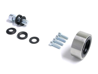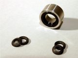 | Slider Mounts Depending on the application, LinMot linear motors can be operated with a "moving slider" or "moving stator." Applications with short stroke ranges are preferably implemented with moving sliders; applications with long strokes are better with a moving stator. In both cases, LinMot recommends the use of special mounting kits for mounting the slider, in order to avoid overdetermining the mount. In moving slider applications, the stator is mounted, and the slider is connected to a load that is guided by a linear guide. In order to avoid alignment errors, the slider is attached to the load or guide using fixed bearings, each consisting of two rounded washers and two bevel washers. In moving stator applications, the slider is mounted and the stator is attached to a linear guide, together with the load. In order to avoid overdetermining the slider bearing, one end of the slider is mounted on a fixed bearing, and the other on a floating bearing. The fixed bearing consists of two rounded washers and two bevel washers. It compensates for angular and axial deflection. The slider is mounted in a rubber ring as a floating bearing. The floating bearing compensates for angular and axial displacement and length tolerance. |